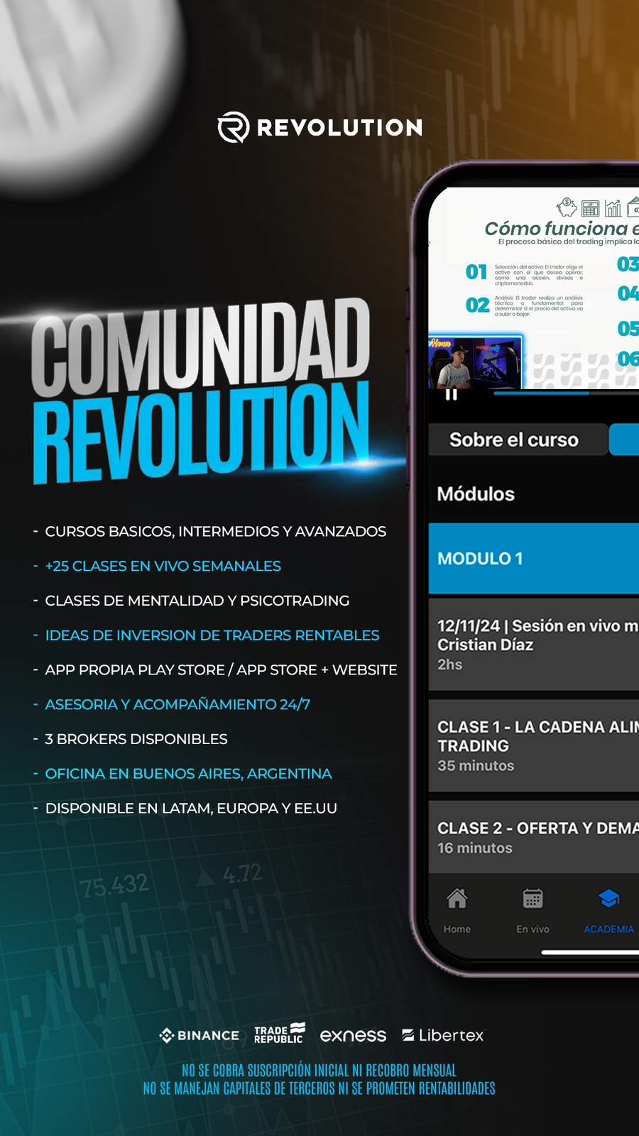 Con Revolution, tendrás un acompañamiento completo desde tus primeros pasos hasta convertirte en un trader, emprendedor e inversor exitoso.